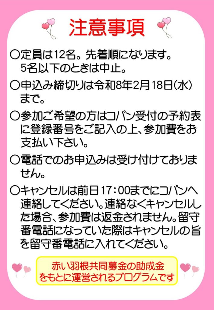 ・定員12名(先着順)(参加者が5名以下の場合は中止)